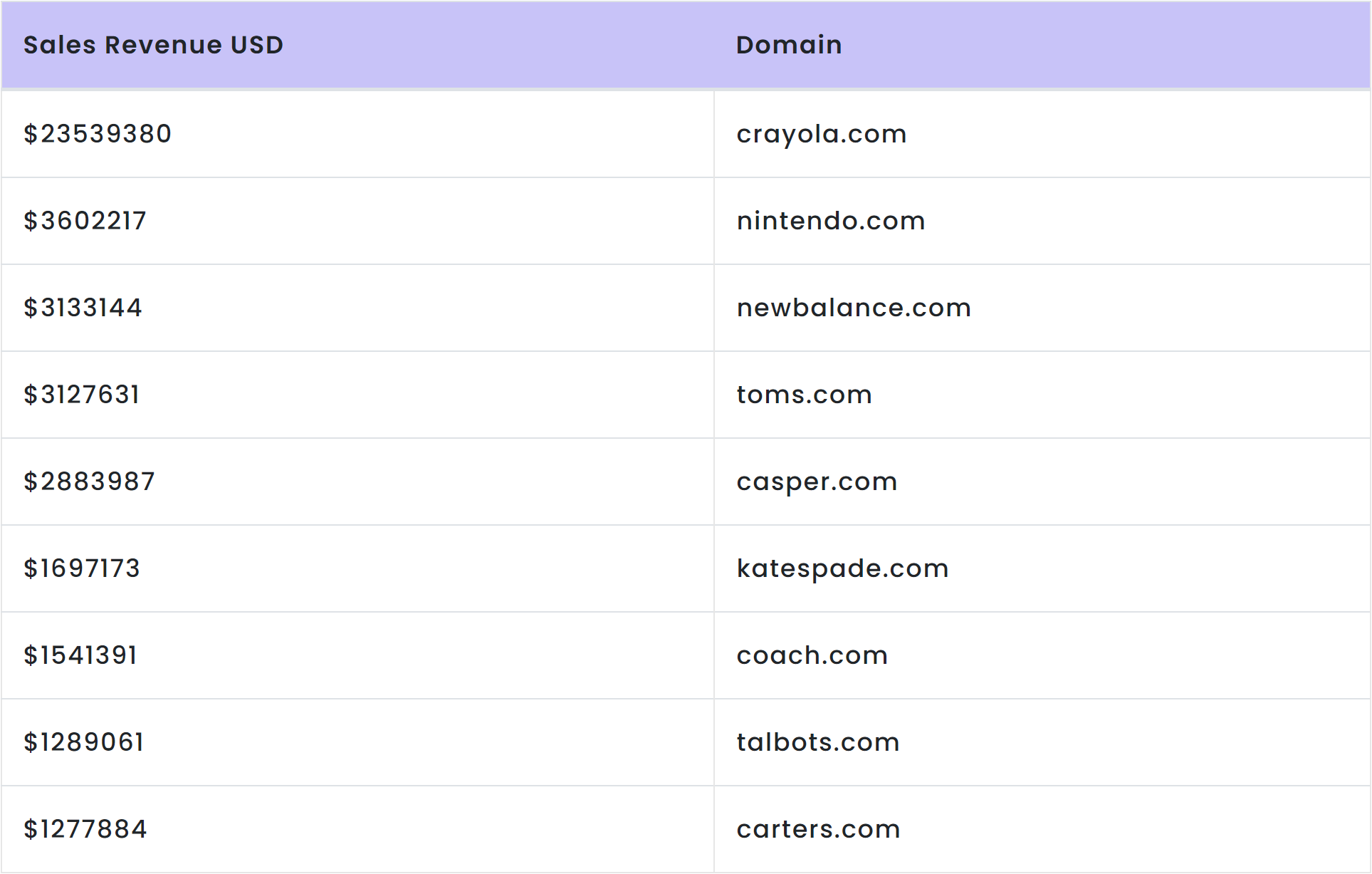 Following are the most Sales revenue earning company domains: